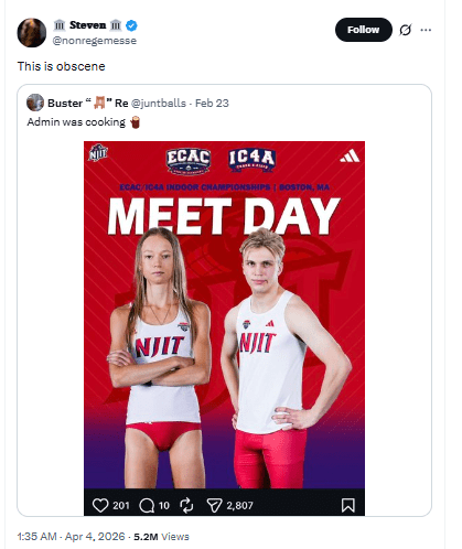 Fans continue debating whether the school should take accountability for posting something so revealing without proper oversight. Many argue that the situation reflects poorly on NJIT, not on the athlete herself.