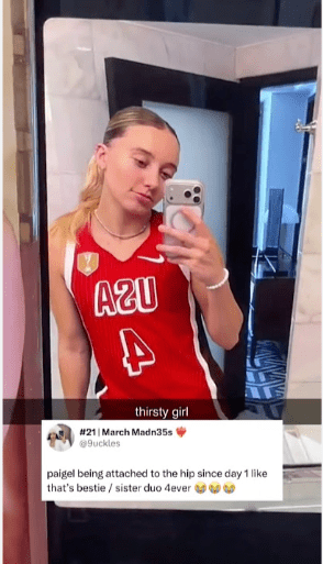 Reese, fresh off playing in Unrivaled, is certainly enjoying herself around her new teammates. One video proved it. Somebody saw a picture that Bueckers posted of herself in uniform and showed it to the group.