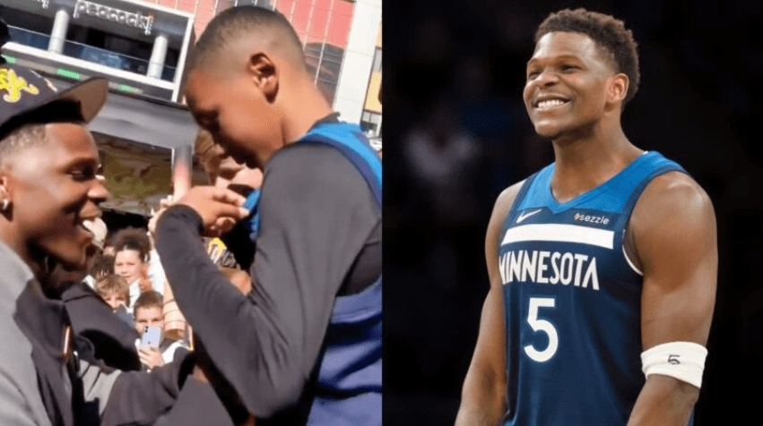 A video circulating on X shows Edwards surrounded by fans, signing autographs. The mood is light, the crowd excited. Then Edwards spots a kid in a Los Angeles Lakers jersey.