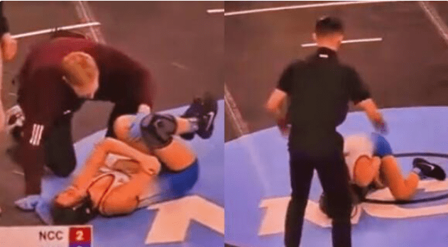 North Central Carolina Men’s Wrestling’s X account shared a clip that appears to show Dearwester putting her left arm up to her own mouth moments before the referee examined the injury.