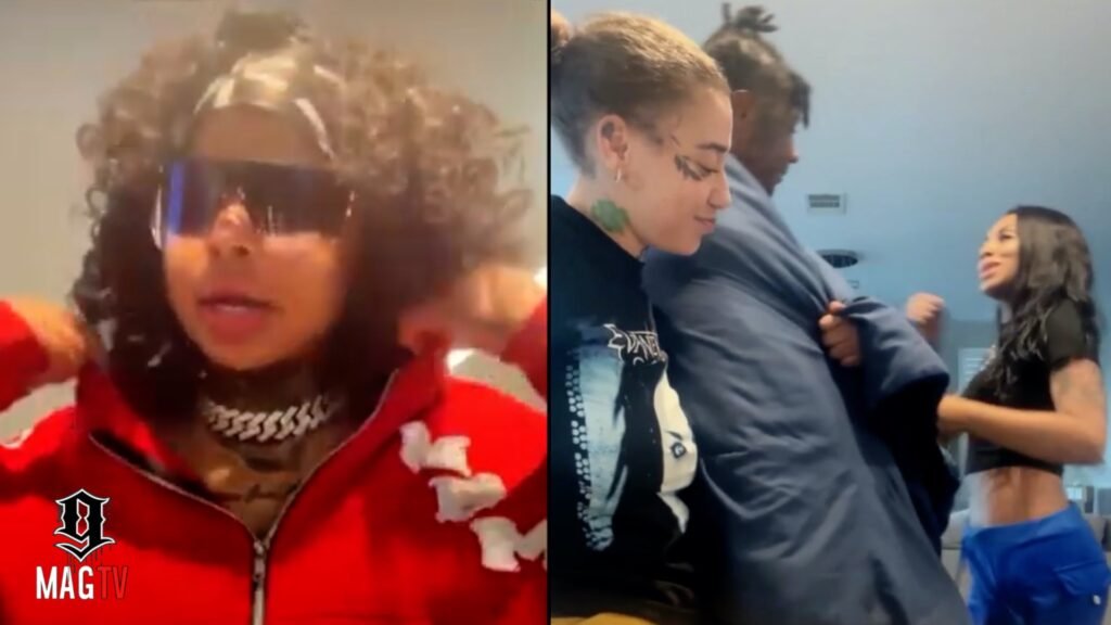 Adding his ex girlfriend Naveah to the mix only fueled the fire. In one clip, both women are seen smiling next to Blueface, seemingly unbothered by the brewing controversy.