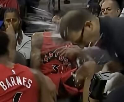 Midway through the third quarter, frustration boiled over after a delay of game call gave Philly’s Trendon Watford a free three point chance. That’s when Ingram, visibly furious, threw his drink bottle in anger splashing teammate Scottie Barnes and even hitting a towel staff member in the face.