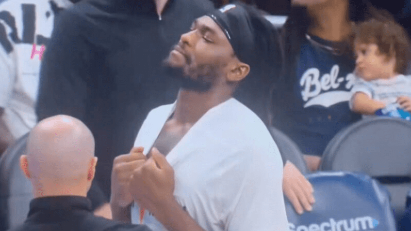 Stewart, known for his history of on-court altercations, was seen gripping his shirt collar, almost as if he was ready to jump into the action. Even though he was not involved in this particular incident.