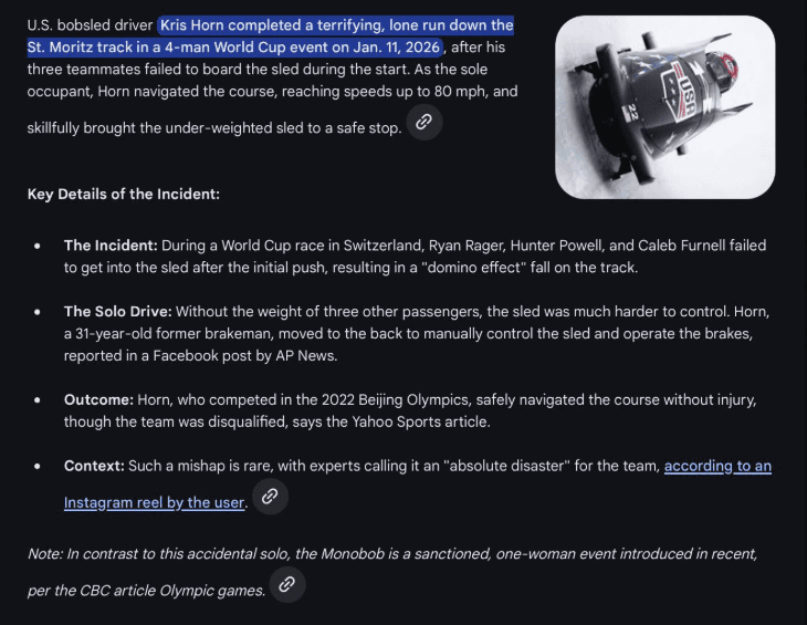 The video will live forever. The memes will keep coming. But the fact remains: a man drove a bobsled 75 mph down an ice track with no one else on board, and he lived to tell the story.