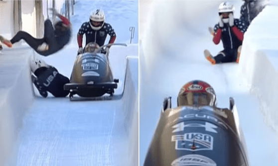 Driver Kris Horn did exactly what he was supposed to do: he launched the four-man sled down the track. The problem? His teammates Ryan Rager, Hunter Powell, and Caleb Furnell stumbled during the push start and never made it into the sled.