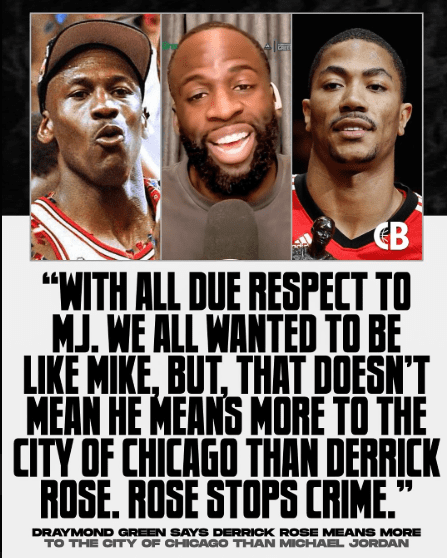 “There’s not one bigger person in the city of Chicago than Derrick Rose. Make no mistake about it,” Green declared on The Draymond Green Show. “D-Rose is everything to the city of Chicago.