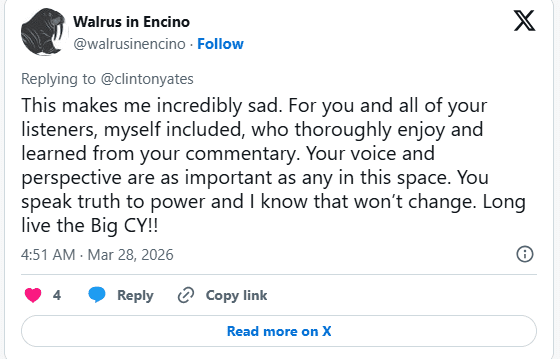 What’s next for him? With his personality, experience, and loyal following, Yates is expected to land quickly whether on digital platforms, radio, or another major sports outlet.