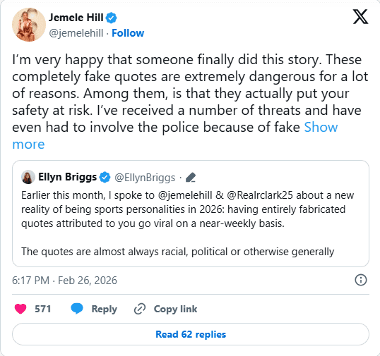 Hill recently revealed via X that she’s been forced to involve police after receiving threats over racially-motivated comments that were completely fabricated.
