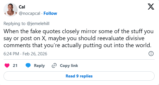 “When the fake quotes closely mirror some of the stuff you say or post on X, maybe you should reevaluate divisive comments that you’re actually putting out into the world,” one wrote.