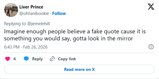 “Imagine enough people believe a fake quote cause it is something you would say, gotta look in the mirror,” another shared.
