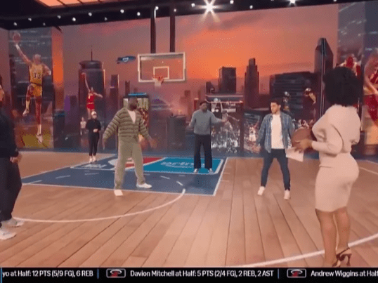 During a pick-and-roll breakdown featuring Steve Nash, Dwyane Wade, and Udonis Haslem, the focus was supposed to be on basketball fundamentals. Nash was explaining the “art of the pick-and-roll” while players set up on the court.