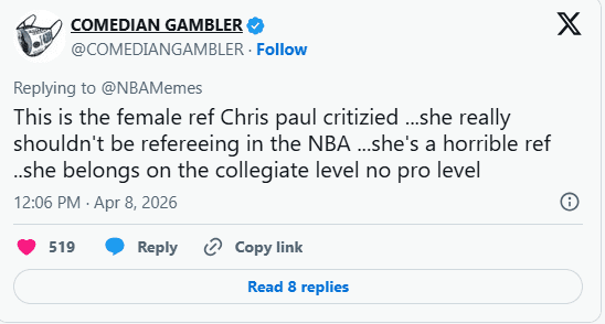 Some accused her of being unfit for NBA officiating, while others claimed the league wants the Thunder to win at all costs and therefore “ignores the rules” when the game favors OKC.