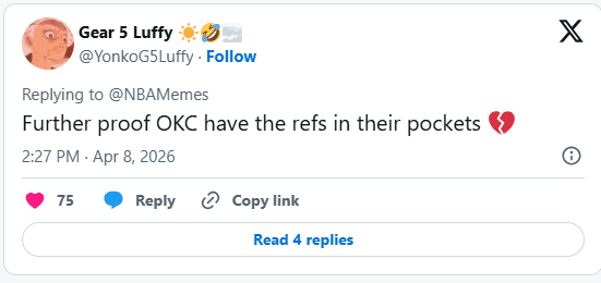 This incident now joins a long list of referee-related criticisms aimed at Oklahoma City throughout the season. staying in the No. 1 seed conversation and proving themselves as one of the Western Conference’s elite teams.