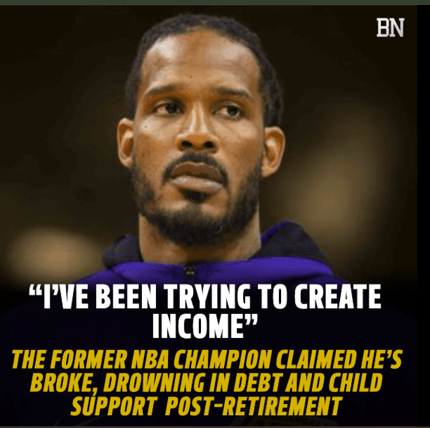 The former NBA champion reportedly revealed he is struggling badly after retirement, claiming he is broke, drowning in debt, and desperately trying to create income.