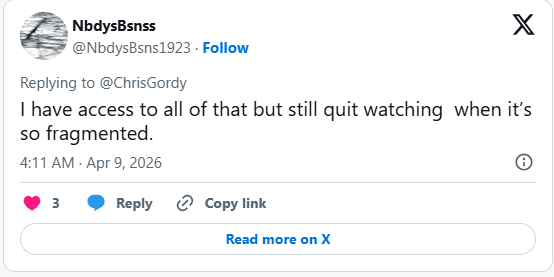 “I have access to all of that but still quit watching when it’s so fragmented.”