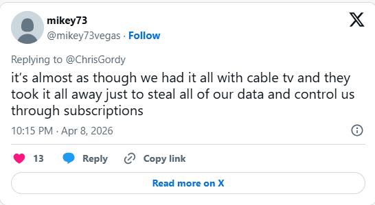 “It’s almost like we had it all with cable, and they took it away just to sell subscriptions.”