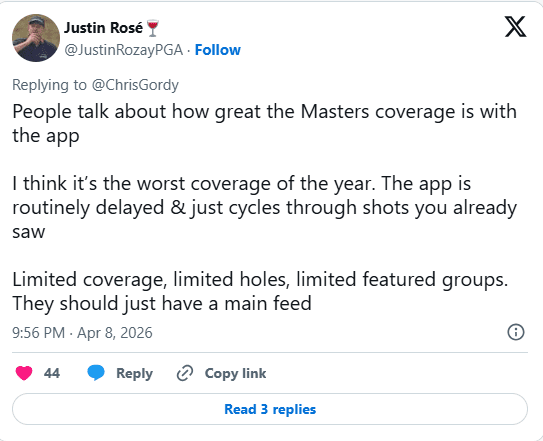 Many also blasted the official Masters app, calling it delayed, repetitive, and incomplete arguing that a tournament this prestigious should have a straightforward, single-feed option.