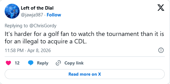 “It’s harder for a golf fan to watch the tournament than it is for an illegal to get a CDL.”