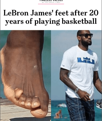 Whether the photo is real or not, one thing is certain: 23 years of NBA basketball leaves marks. LeBron James has given his body to the game, and if his feet look like that.
