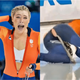 The video, which appears to be from a practice session, shows Leerdam taking a violent fall on the ice. She crashes hard into the sideboards, and the impact is so severe that her skating suit rips open exposing significantly more than she intended.