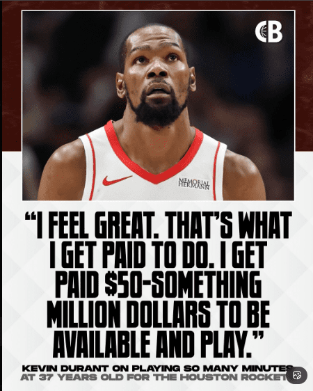 For Durant, however, this is simply the job description for a player with his contract. “I get paid $50-something million to be available,” Durant stated bluntly, dismissing concerns about his workload. “I’m preparing for 48 minutes a night”.