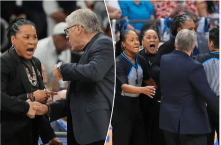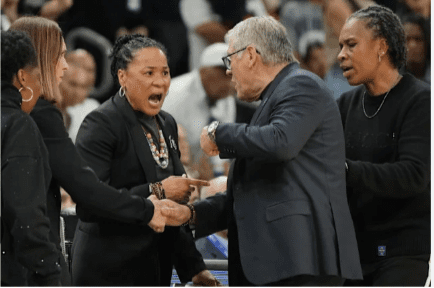 The NCAA women’s basketball world erupted Friday night when South Carolina head coach Dawn Staley and UConn legend Geno Auriemma got into a fiery confrontation that overshadowed the Final Four matchup itself.