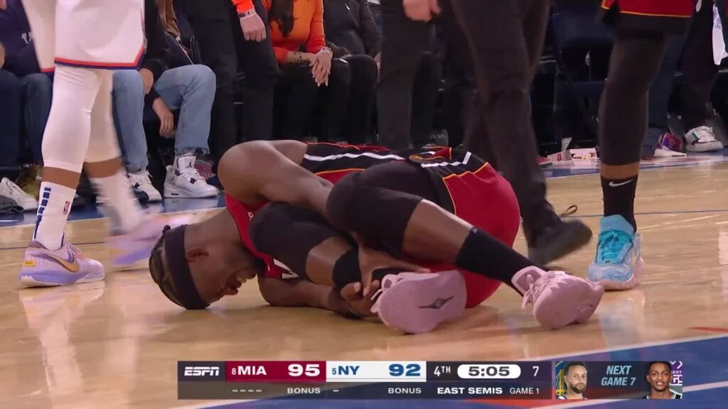 Butler had crashed violently onto his hip while attempting to secure a defensive rebound. The way he tried to brace himself resulted in his left elbow absorbing some of the impact, and he remained down momentarily before trying to gather himself. Even though he managed to stand and walk toward the bench without needing help, it was obvious that he was in visible discomfort.