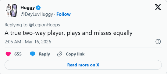 “Joel Embiid’s work-life balance,” a fan joked.“A true two-way player, plays and misses equally,” another commented.