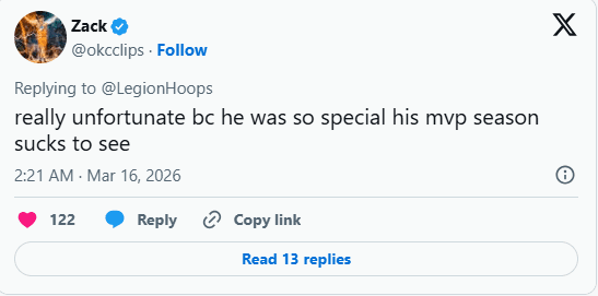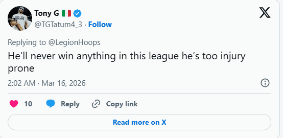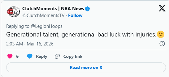 “He’ll never win anything in this league he’s too injury prone,” a fan said.“Really unfortunate bc he was so special his MVP season sucks to see,” another commented.