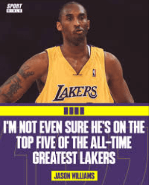 While the legendary Lakers guard is often placed in the top five or ten players in basketball history, Williams contends that Bryant doesn’t even rank among the top 15 all-time and is only the fifth-greatest Laker ever.