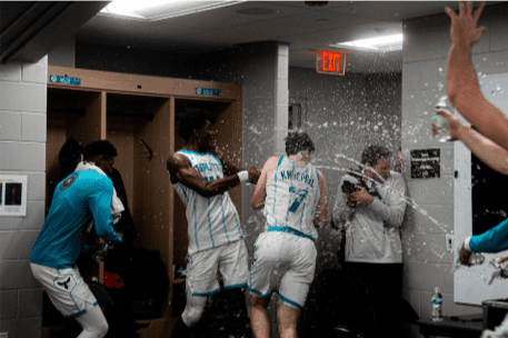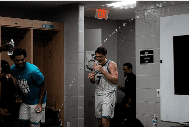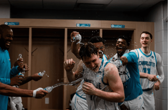 The Charlotte Hornets may still be figuring things out on the court, but inside the locker room, the vibes are looking completely different and much more dangerous… at least if you’re a rookie with a dry jersey.