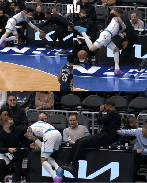 The incident occurred late in the second quarter on February 1, 2026. LaMelo Ball was chasing a loose ball heading out of bounds near the Hornets’ bench.
