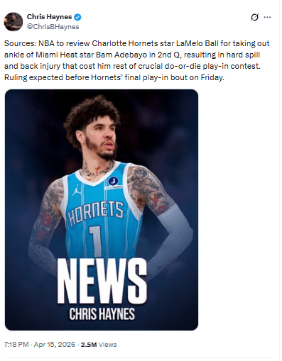 Following the incident, reports surfaced that the NBA is reviewing Ball’s actions. According to insider Chris Haynes, the league is expected to make a ruling before the Hornets’ next Play-In game.