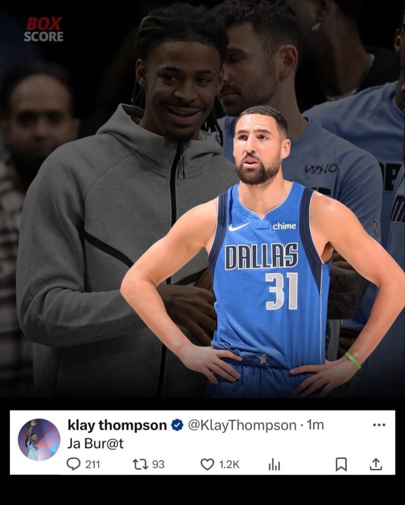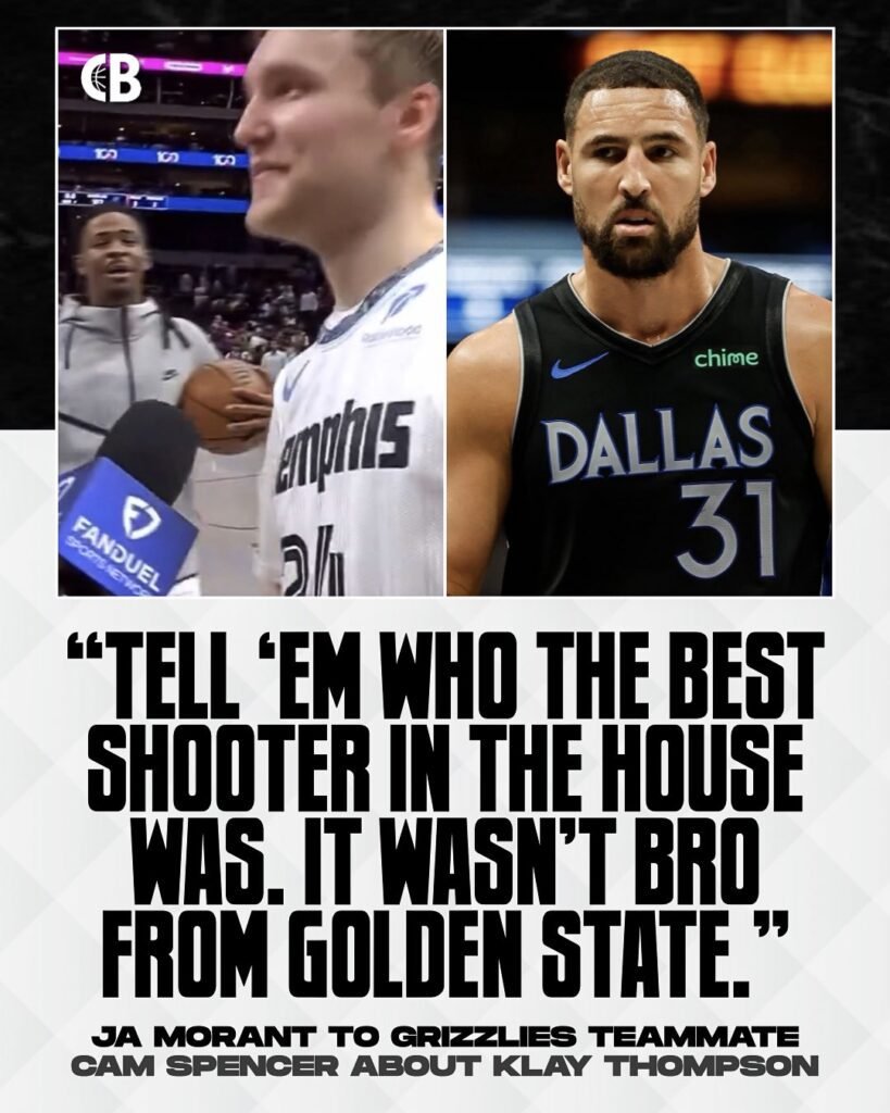 The initial tension had nothing to do with Morant. It began when Mavericks rookie Cooper Flagg got tangled up with Santi Aldama. Many believed Aldama tripped Flagg intentionally, and Klay Thompson immediately took offense.