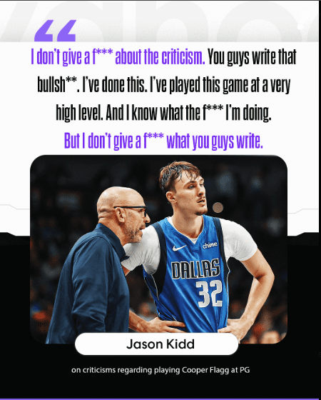 The media criticism Kidd referenced centers on his innovative, and some say risky, use of 19-year-old rookie Cooper Flagg. The No. 1 overall pick in the 2025 NBA Draft, Flagg was heralded as a generational talent