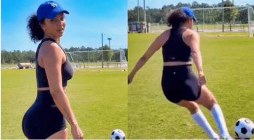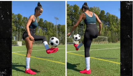 Renner, who boasts over four million followers on Instagram, shared a clip of herself confidently stepping onto a soccer field and attempting a precision challenge.