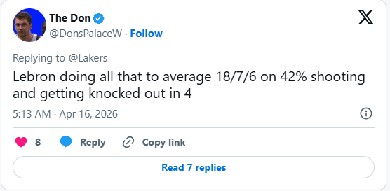That leaves LeBron James as the primary force expected to carry the team early in the series. Even at 41, the burden falls heavily on him to deliver performances reminiscent of his prime years.