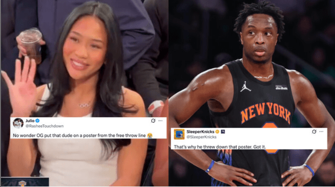 Some joked that Anunoby needed to “lock in” with a celebrity in attendance, while others leaned into the ongoing internet narrative connecting the two.
