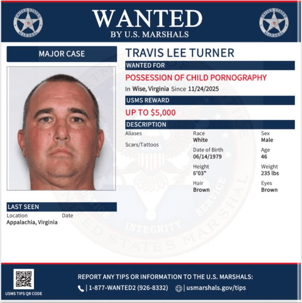 Shortly after his disappearance, arrest warrants were issued. Turner faces five counts of possession of child pornography and five counts of using a computer to solicit a minor.