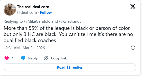 “More than 55% of the league is black or person of color but only 3 HC are black. You can’t tell me there are no qualified black coaches,” said a fan.