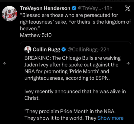 Ivey, who questioned the NBA’s promotion of Pride Month during the livestream, was waived by Chicago shortly afterward.