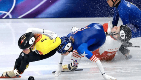 Italy’s Ariana Fontana and American skater Kristen Santos-Griswold also went down in the same turn. But Sellier took the worst of it.