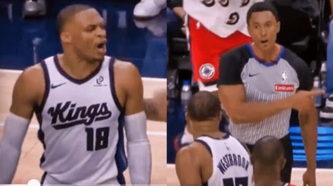 The timing was unusual because challenges are rarely allowed once the free-throw process has essentially started. Westbrook, standing nearby.