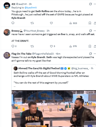 A dramatic moment unfolded on live television during NFL Draft coverage when WWE superstar Seth Rollins abruptly walked off the set following a heated exchange with host Kyle Brandt.