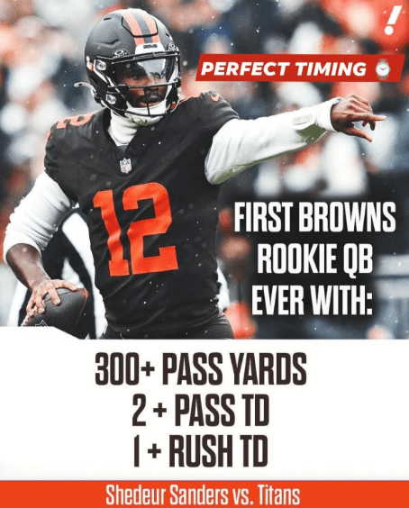 But very few extremely few have a breakout night that instantly changes their franchise and redefines public expectations. What Shedeur did in Cleveland carried that exact weight because it wasn’t just any performance. It wasn’t empty stats. It wasn’t garbage-time scoring.