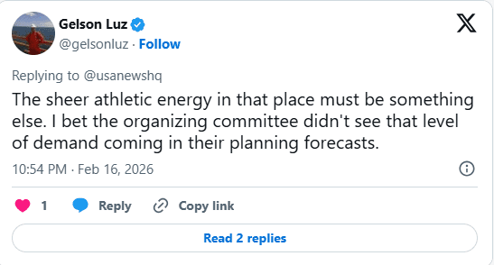 “The sheer athletic energy in that place must be something else. I bet the organizing committee didn’t see that level of demand coming in their planning forecasts,” another added.