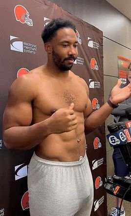 After Cleveland’s loss to the Baltimore Ravens, Garrett stepped up to speak with reporters. Shirtless and still in his gray performance pants, the All Pro edge rusher was answering questions about his four-sack performance when fans online began circulating screenshots of the interview pointing out that something “very noticeable” appeared to be visible due to the camera angle and lighting. Within minutes, the clip spread across X (Twitter), TikTok, Instagram, and every sports forum imaginable.