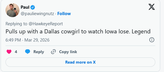 “Pulls up with a Dallas cowgirl to watch Iowa lose. Legend,” one fan joked.