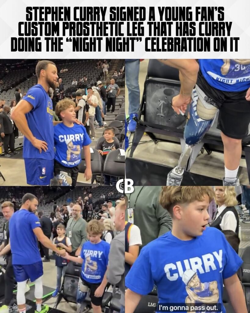 For the young fan and their family, this encounter will be a story they tell for years to come. A simple autograph on a prosthetic leg becomes more than ink; it becomes a symbol of possibility, courage, and connection. And for Steph Curry, moments like these are a reminder of why he plays the game: to inspire, to connect, and to leave a positive mark both on and off the court.