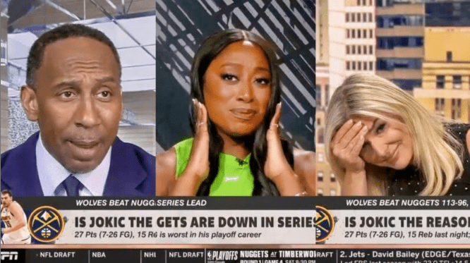 The moment happened while the ESPN panel was discussing Game 3 of the Denver Nuggets vs. Minnesota Timberwolves playoff series.